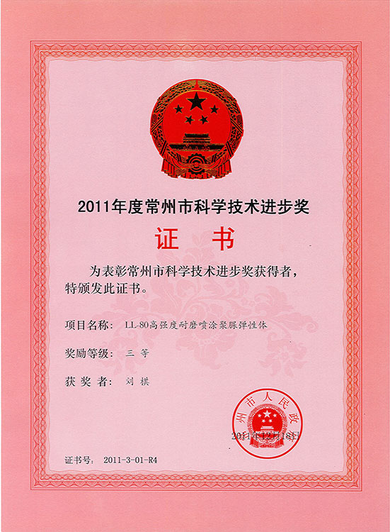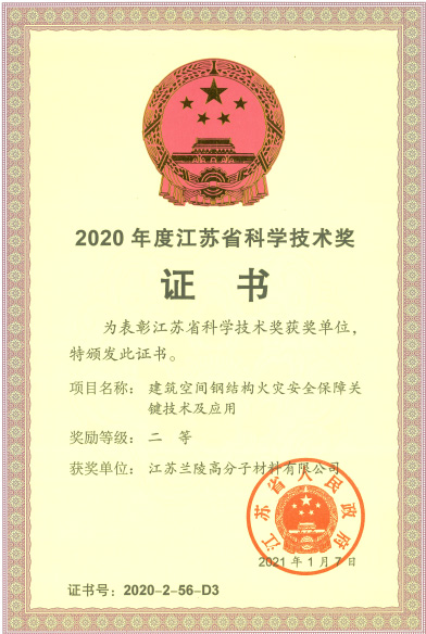 LP3068國家火炬計劃 聚脲市科技進步三等獎 2020年度江蘇省科學技術獎證書