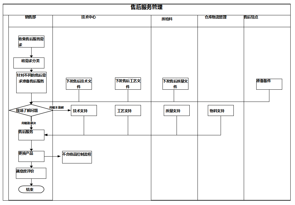 建立了CRM系統(tǒng),開展顧客檔案記錄和服務(wù)管理。不同顧客對(duì)售后服務(wù)有不同的需求,把不同顧客的需求轉(zhuǎn)化為內(nèi)部要求,制定了《顧客投訴管理》程序,及時(shí)響應(yīng)的顧客投訴處理。售后服務(wù)管理流程見圖6。