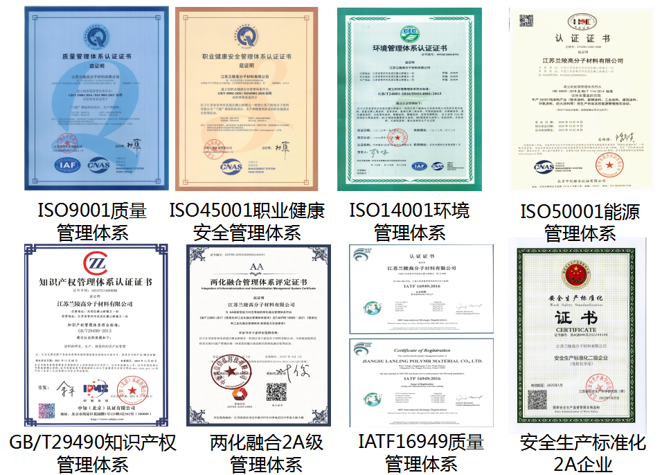 江蘇蘭陵確立“創(chuàng)新設(shè)計(jì)、精細(xì)制造、一流服務(wù)、做百年品牌企業(yè)”的質(zhì)量誠信方針,并且依據(jù)此質(zhì)量方針不斷推動(dòng)質(zhì)量品質(zhì)的提升和增強(qiáng)客戶的滿意度。公司早在1997年就通過IS09001的認(rèn)證,并每年進(jìn)行內(nèi)外審查、換版認(rèn)證;2022年通過汽車行業(yè)IATF16949質(zhì)量管理體系;2023年通過ISO/IEC 17025:2017實(shí)驗(yàn)室體系認(rèn)證。極大提升了公司在產(chǎn)品質(zhì)量方面的競爭力和在質(zhì)量方面的宣傳。公司按照質(zhì)量體系要求,在產(chǎn)品開發(fā)和生產(chǎn)的每個(gè)環(huán)節(jié)都進(jìn)行嚴(yán)格的質(zhì)量標(biāo)準(zhǔn)約束,以確保公司的運(yùn)作規(guī)范、有序,為公司產(chǎn)品質(zhì)量長期保持穩(wěn)定,不斷增強(qiáng)客戶滿意度提供了可靠的保障。